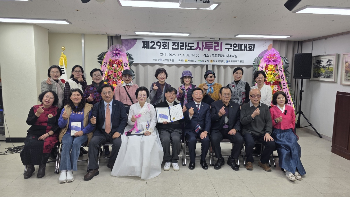 12월 4일(목) 목포문화원에서 개최된 제29회 전라도사투리구연대회가 많은 관심과 참여 속에 성황리에 종료되었습니다.